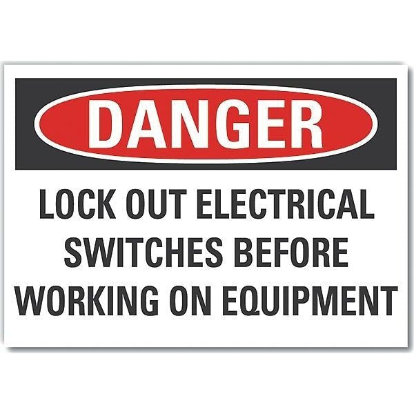 Decal, Danger Lock Out Electrical, 10 x 7", Header Background Color: Black, RedSKU G9463590Categories Electric and Cordless ToolsDescription Aluminum Lockout Tagout Danger Sign, Vertical Rectangle, Number of Printed Sides 1, English, Sign Format Traditional OSHA, Sign Legend Lock Out Electrical Switches Before Working On Equipment, Sign Legend Background Color White, Sign Legend Style TextgraingerSKU: 64PA35, mscSKU: , zoro_no: G9463590, mongo_id: 65bbe6db3aaddbd5a905a053