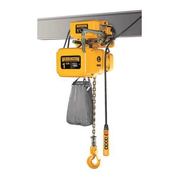 Electric Chain Hoist, 2,000 lb, 20 ft, Motorized Trolley, YellowSKU G2478427Categories Electric and Cordless ToolsDescription Electric Chain Hoist, Duty Classification H4, Mount Type Motorized Trolley, Maximum Lifting Capacity 2,000 lb, Number of Speeds 1, Programmable Non-Programmable, Fixed Lift Speed 14 fpm, Minimum Lift Speed Not Applicable, Maximum Lift Speed Not Applicable, Trolley Speed 40 fpm, Maximum Lifting Length 20 ft, Current at Minimum Voltage 8 A, Current at Maximum Voltage 1.7 A, Motor Horsepower 1 1/4 hp, Operating Voltage 208-230/460V AC, Headroom 17 in, For Minimum Beam Height 5 3/32 ingraingerSKU: , mscSKU: , zoro_no: G2478427, mongo_id: 65bbe61f3aaddbd5a900bbe8