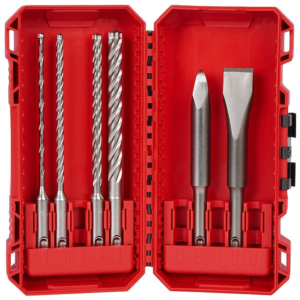 6 pc. 4-Cutter MX4 SDS-Plus Rotary Hammer Drill Bit and Chisel SetSKU G406898246Categories Hand ToolsDescription Rotary Hammer Drill Bit Set, SDS Plus, 4 Number of Drill Bits, Carbide, Number of Cutter Heads 4, Overall Length 7 5/8 in, Bright (Uncoated), Shank Hex Size Not Applicable, Shank Diameter 13/32 in, Shank Length 2 ingraingerSKU: null, mscSKU: null, zoro_no: G406898246, mongo_id: 65bbe5da3aaddbd5a9fef321