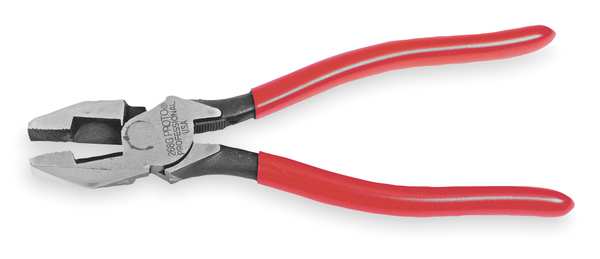 SKU G1498935Categories Hand ToolsDescription Linemans Plier, Tether Ready Yes, Plier Type Lineman's Pliers, Overall Length 8 5/8 in, Jaw Length 1 1/2 in, Jaw Width 1 1/4 in, Jaw Thickness 5/8 in, Handle Style Dipped, High Leverage No, Features Built-in Insulation Crusher, Grip Material Plastisol, Handle Color Red, Jaw Opening Type Manual, Jaw Texture SerratedgraingerSKU: , mscSKU: 85226546, zoro_no: G1498935, mongo_id: 65bbe7943aaddbd5a90a2696