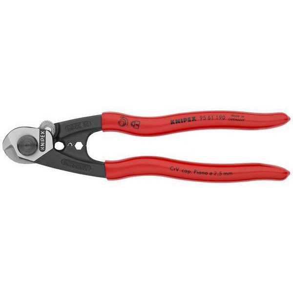 SKU G9750273Categories Hand ToolsDescription Wire Cutter, Adjustment Type Screw, Cutter Type General Purpose Cable Cutter, Cutting Action Shear, Features Bolted Joint for Precise Blade Guidance, Chrome Vanadium Heavy-Duty Steel, Comfortable Work Due to Slim Design and Internal Opening Spring, Cutting Edge Hardness Approximately 64 HRC, High leverage for Reduced Effort, Readjustable, For Maximum Diameter Medium Steel 5/32 in, For Maximum Wire Thickness 8 AWG, For Wire/Cable Type Wire Rope, For Maximum Diameter Data Cable 9/32 ingraingerSKU: 38GU44, mscSKU: 05903422, zoro_no: G9750273, mongo_id: 65bbe7643aaddbd5a909150e