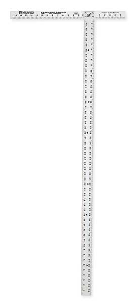 SKU G0999327Categories Hand ToolsDescription Drywall T-Square, Base Length 24 in, Base Width 1 1/4 in, Includes Blade, Blade Length 54 in, Blade Width 2 in, Blade Material Aluminum, Graduation Mark Style Printed, Graduation Marks - Base 1/8 in, Graduation Marks - Blade 1/8 in, Specialized Scales Not Applicable, Base Material Aluminum, Plastic, System of Measurement SAE, Square Type Drywall T-Square, Coating Clear, Edge Style Square, Features Head Will Stay Square for Life of Product, Finish Unfinished, Graduation Color BlackgraingerSKU: 5LC30, mscSKU: 56368467, zoro_no: G0999327, mongo_id: 65bbea6b22d7a989a99b2c43