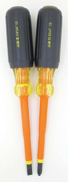 Insulated Screwdriver Set, Slotted/Phillips, 2 pcsSKU G5119852Categories Hand ToolsDescription Insulated Screwdriver Set, #2, 1/4 in, Assorted, Number of Pieces 2, Yes, ESD Safe No, Includes Keystone Slotted 1/4 in x 8-1/4 in , Phillips #2 x 8-1/2 in , ASTM F1505-01, IEC 60 900, OSHA Requirements for Insulated Tools 29 CFR 1910graingerSKU: 46W413, mscSKU: , zoro_no: G5119852, mongo_id: 65bbee1d526e052139aefb92