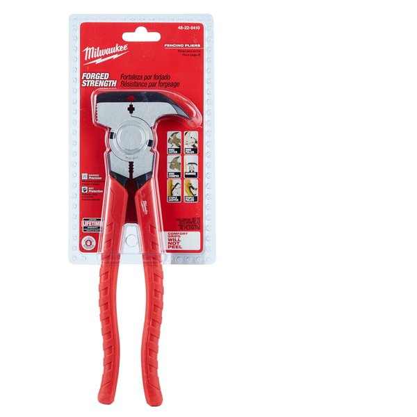 Comfort Grip Fencing PliersSKU G4123038Categories Hand ToolsDescription Fencing Plier, Plier Type Fencing Pliers, Jaw Length 3/4 in, Jaw Width 3 1/4 in, Overall Length 10 5/8 in, Maximum Jaw Opening 1 1/2 in, Grip Style Standard Cushion, Tether Ready No, Insulated No, Non-Sparking No, Additional Tool Functions Wire Crimper, Wire Cutter, Cutting Capacities 8 AWG, Features Multi-Purpose Tool, Rust Resistant, For Wire/Cable Type Fencing Wire, Handle Color Red, Handle Style Standard, Jaw Opening Type Manual, Jaw Shape Clamping Jaw, Maximum Wire Cutting Diameter 8 gagraingerSKU: 48ZT19, mscSKU: 18843797, zoro_no: G4123038, mongo_id: 65bbee2b526e052139af36ec