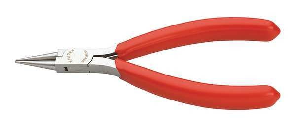 4 1/2 in Round Nose Plier Plastic Coated HandleSKU G0467735Categories Hand ToolsDescription Round Nose Plier, Plier Type Round Nose Pliers, Jaw Bend 0 Degrees , ESD-Safe No, Overall Length 4 1/2 in, Maximum Jaw Opening 3/4 in, Jaw Length 7/8 in, Tip Width 5/64 in, Jaw Thickness 1/4 in, Insulated No, Non-Sparking No, Voltage Rating Not Rated, Application Bending, Gripping, Holding, Ultra Fine Assembly Work in Electronics and Fine Mechanics, Cutting Capacities Not Specified, Features Effective Rust Protection, Low-Friction Double Spring for Gentle and Even Opening, Finish PolishedgraingerSKU: 38UT11, mscSKU: , zoro_no: G0467735, mongo_id: 65bbea5222d7a989a99a8e96