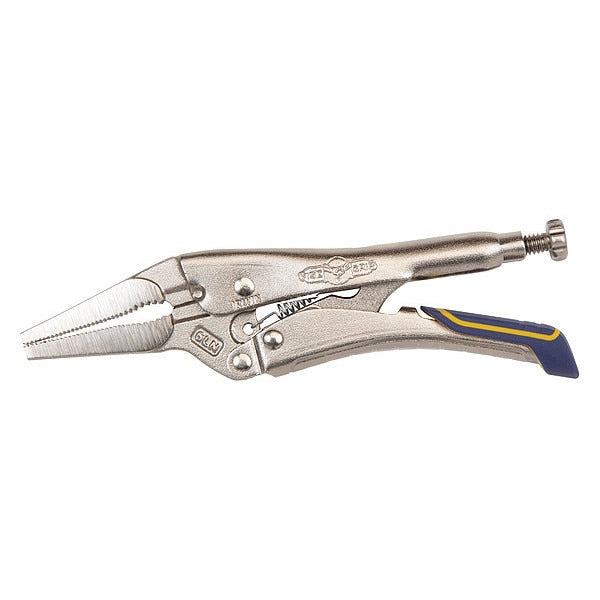 SKU G7559153Categories Hand ToolsDescription Locking Plier, Plier Type Locking Pliers, Jaw Shape Long Nose, Handle Style Ergonomic, Handle Opening Type Quick Release, Overall Length 6 in, Maximum Jaw Opening 2 in, Jaw Length 2 in, Includes Wire Cutter Yes, Grip Style Knurled, Tether Ready No, Additional Tool Functions Wire Cutter, Non-Sparking No, Adjustment Mechanism Adjusting Screw, Application High-Temperature Applications, Features Backed By Irwin Lifetime Guarantee, Finish Nickel Plated, Jaw Thickness 3/8 ingraingerSKU: 54ZF99, mscSKU: 98077415, zoro_no: G7559153, mongo_id: 65bbe98f22d7a989a996125c