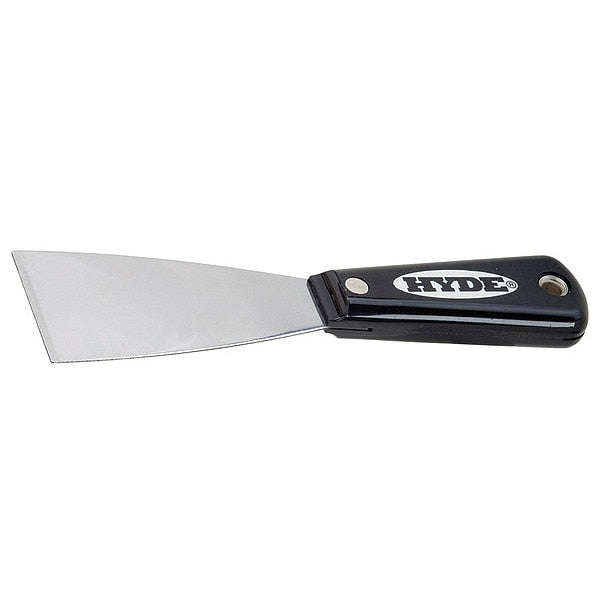 Putty Knife, Stiff, 2", Carbon SteelSKU G1001795Categories Hand Tools , Raw MaterialsDescription Drywall and Putty Knives, Nonsparking No, Stiff, Blade Type Full Tang, Blade Width 2 in, Blade Material Carbon Steel, Handle Material Nylon, Putty Knife, Blade Length 3 3/4 in, Handle Length 4 in, Handle Design Tapered, No. of Edges 1, Color Black/Silver, Overall Length 7 3/4 ingraingerSKU: 5LL95, mscSKU: 00237545, zoro_no: G1001795, mongo_id: 65bbe9a422d7a989a996bd26