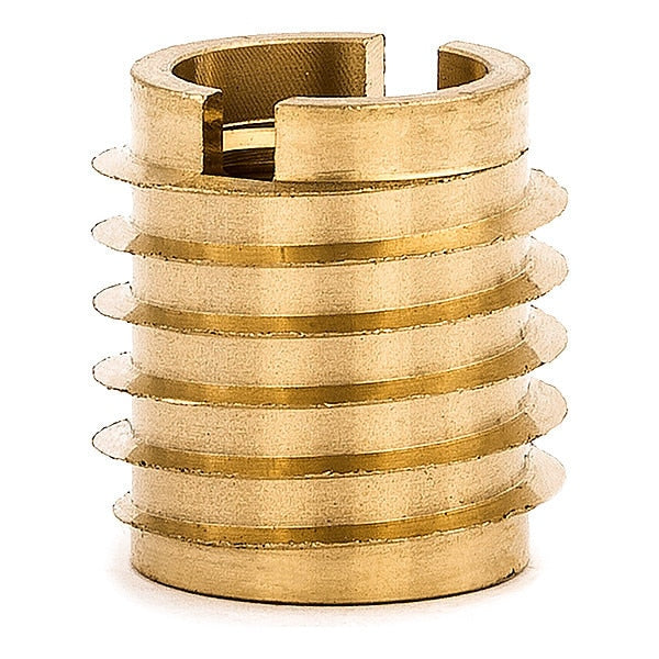 Knife Thread Insert, M10-1.50 Int Thrd Sz, 15.875 mm L, 12.7 mm Dia., Brass, Plain, 10 PKSKU G709228269Categories Hand Tools , Raw MaterialsDescription Knife Thread Insert, System of Measurement Metric, Insert Diameter 12.7 mm, Overall Length 15.875 mm, Internal Thread Size M10-1.50, Thread Direction Right Hand, Thread Type Coarse, Material Brass, Material Grade/Class C3604, Finish Plain, Drive Type Slotted, Drill Bit Size 33/64 in, Compatible Material Wood, Minimum Material Thickness 19 21/32 mm, Maximum Hole Diameter 13.106 mm, Compatible Manufacturer Part Number DT-M10, Installation Method Drive Tool, Screwdriver$15.63 / eachWeb price -