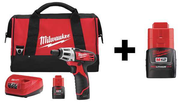 Cordless Screwdriver Kit, W/Add BatSKU G2605333Categories Electric and Cordless Tools , Hand ToolsDescription Cordless Screwdriver Kit, Chuck Size 1/4 in, Battery Included / Bare Tool Battery Included, Voltage 12V, Max. Torque 175 in-lb, No Load RPM 0 to 500, Cordless, Cordless Tool Battery Type Li-Ion, Battery Capacity 2.0 Ah, Battery Included 38D763, Battery Pack Replacement 38D763, Features Quick Bit Loading, Built In LED Light, Battery Fuel Gauge, One Handed Bit Loading and Unloading, Metal Gear Housing, Variable Speed Trigger, Over Mold Side and Grip, Tool Length 7 in, Tool Weight 2 lbgraingerSKU: , mscSKU: , zoro_no: G2605333, mongo_id: 65bbe93c22d7a989a99412b2