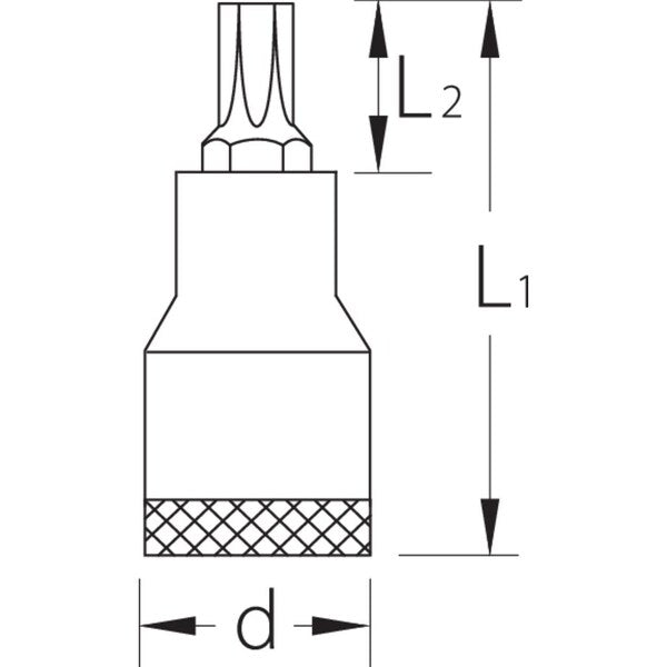 Screwdriver Bit Socket, 3/8", Torx T50, Overall Length: 49mm