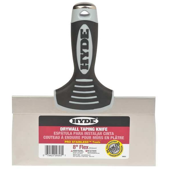 Taping Knife, Flexible, 8", SSSKU G4535973Categories Hand ToolsDescription Drywall and Putty Knives, Nonsparking No, Flexible, Blade Type Folded Backing, Tapered, Blade Width 8 in, Blade Material Stainless Steel, Handle Material Plastic, Taping Knife, Blade Length 3 1/2 in, Handle Length 6 in, Handle Design Hammer Head, Soft Grip, No. of Edges 1, Color Black/Cream, Overall Length 10 ingraingerSKU: 24Z444, mscSKU: , zoro_no: G4535973, mongo_id: 65bbe8789a749db82279524e