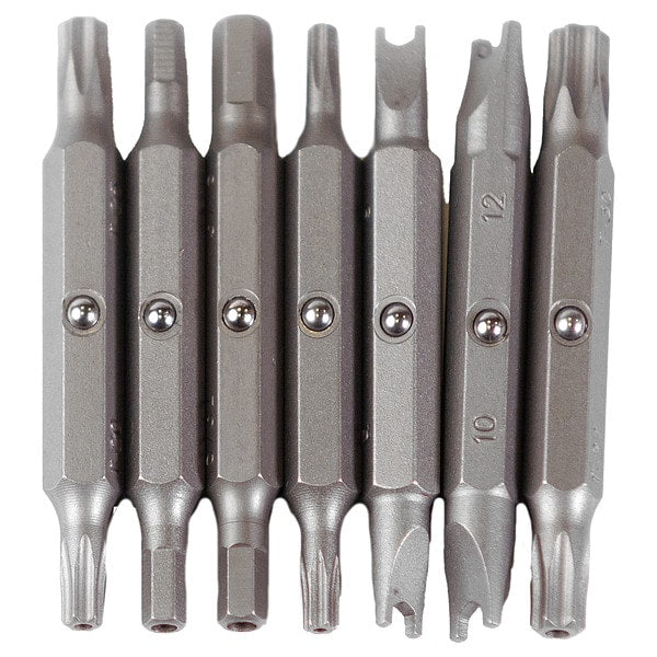 SKU G905735608Categories Hand ToolsDescription Screwdriver Bit Set, No. of Pieces 7, Hex Shank Size 1/4 in, Fastening Tool Material S2 Steel, Impact Rated No, Hand, Includes Hex Pin 1/8-9/64, Hex Pin 5/32-3/16, Spanner 10-12, Spanner 6-8, Torx Pin 10-15, Torx Pin 20-25, Torx Pin 27-30, Bit Length 2 ingraingerSKU: , mscSKU: , zoro_no: G905735608, mongo_id: 65bbe84c22d7a989a98eb2e1
