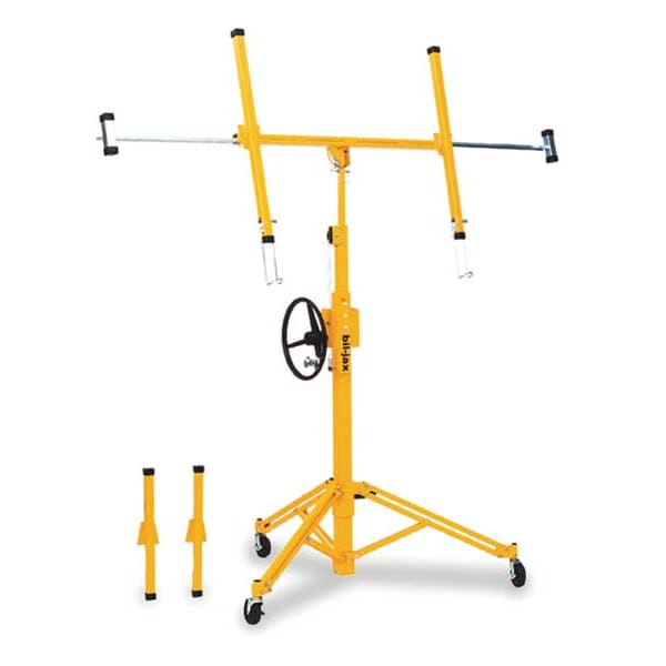 SKU G3443067Categories Hand ToolsDescription Drywall Lift, Maximum Lifting Capacity 200 lb, Lifting Height Minimum 5 ft, Lifting Height Maximum 12 ft, Maximum Drywall Height 12 in, Maximum Drywall Width 4 in, Base Leg Outside Diameter 30 in, Body Material Steel, Caster Type Locking, Height Stowed 30 in, Overall Height 144 in, Color Yellow, Features Portable with Locking Caster Wheels, Lifts and Holds Drywall and Cement Board Against Ceiling Joists, Wheel Diameter 4 ingraingerSKU: 3NZG1, mscSKU: , zoro_no: G3443067, mongo_id: 65bbe84c22d7a989a98eaa7e