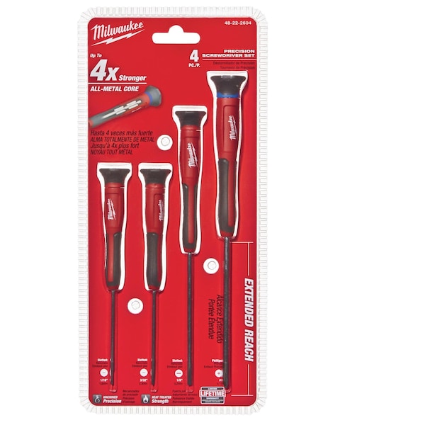 4 PC Precision Screwdriver SetSKU G9753073Categories Hand ToolsDescription General Purpose Screwdriver Set, Tip Finish Chrome, 1/16 in, 1/32 in, 1/8 in, Phillips, Slotted, Ergonomic, Number of Pieces 4, No, ESD Safe No, Non-Sparking No, Measurement Type SAE, Includes Phillips Screwdriver #1 x 4 in , (3) Slotted Precision Screwdrivers: 1/16 in x 2-1/2 in , 3/32 in x 2 1/2 in , 1/8 in x 3-1/2 in , Corrosion Resistant Yes, Tether Ready No, Range of Shank Lengths 3 in to 6 ingraingerSKU: , mscSKU: 50175413, zoro_no: G9753073, mongo_id: 65bbe66b3aaddbd5a902c1d1