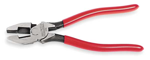 9 1/4 in Linemans Plier High Leverage, SteelSKU G1020792Categories Hand ToolsDescription Linemans Plier, Tether Ready Yes, Plier Type Lineman's Pliers, Overall Length 9 1/4 in, Jaw Length 1 1/4 in, Jaw Width 1 1/8 in, Jaw Thickness 5/8 in, Handle Style Dipped, Additional Tool Functions Wire Cutter, High Leverage Yes, Features Jaws Have Offset Rivet, Grip Material Plastisol, Handle Color Red, Jaw Opening Type Manual, Jaw Texture SerratedgraingerSKU: , mscSKU: , zoro_no: G1020792, mongo_id: 65bbe6ff3aaddbd5a9069189