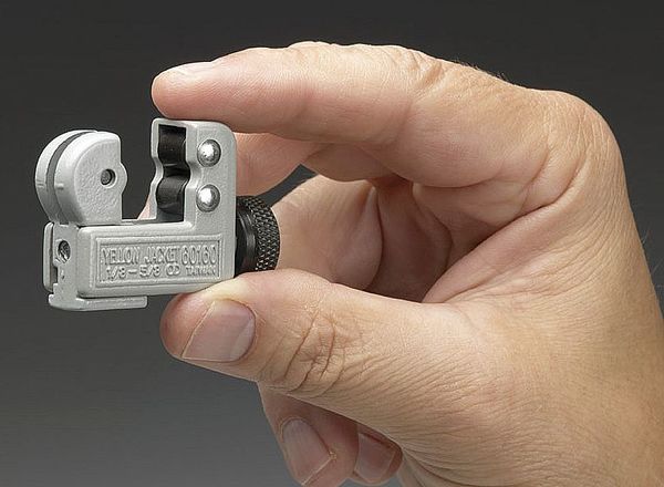 Tubing Cutter, 1/8" to 5/8" Cut Cap.SKU G4821661Categories Hand ToolsDescription Tubing Cutter, Product Type Mini-Cutter, Material Application Aluminum, Brass, Copper, Cutting Action Enclosed Feed, Minimum Cutting Capacity 3/16 in, Maximum Cutting Capacity 11/16 in, Tool Length 4 1/2 in, Body Material Aluminum, Blade Material Steel, Features Turning Radius of Only 1-3/16 Inch, Handle Design Textured for Grip, Handle Material Aluminum, Replacement Blade Mfr. No. 60110graingerSKU: 38D886, mscSKU: , zoro_no: G4821661, mongo_id: 65bbe63d3aaddbd5a90184d9