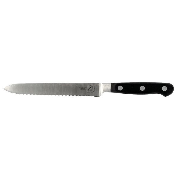 SKU G1174871Categories Hand ToolsDescription Tomato Knife, FDA Compliant No, Forged/Stamped Forged, Knife Type Tomato Knife, Blade Material Steel, Dishwasher Safe No, Handle Color Black, Blade Type Serrated, Wavy Edge, Overall Length 5 in, NSF Certified Yes, Handle Material Glass Reinforced Polyoxymethylene, Blade Length 5 in, Metal Detectable No, Number of Implements 1graingerSKU: , mscSKU: , zoro_no: G1174871, mongo_id: 65bbe7183aaddbd5a9074ef0