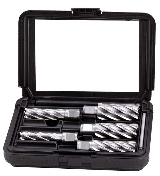 SKU G2008255Categories Hand ToolsDescription Annular Cutter Set, Number of Cutters 5, High Speed Steel, Bright (Uncoated), Weldon Flat, Shank Diameter 3/4 in, Shank Hex Size 3/4 ingraingerSKU: , mscSKU: , zoro_no: G2008255, mongo_id: 65bbe6203aaddbd5a900bfda