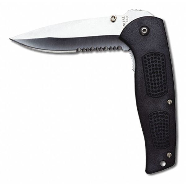 SKU G1566028Categories Hand ToolsDescription Rescue Knife, Application Cutting, Blade Length 3 1/2 in, Blade Material Stainless Steel, Blade Type Serrated, Blade Edge Type Half Serrated, Grip Material Rubber, Handle Color Black, Handle Material Rubber, Handle Style Textured, Overall Length 8 1/4 in, Overall Thickness 0.5 in, Overall Width 1 1/2 in, Replaceable Blade Yes, Tools Included Serrated Blade, Weight 0.3 lbgraingerSKU: , mscSKU: , zoro_no: G1566028, mongo_id: 65bbe6083aaddbd5a90022d9