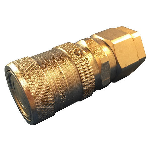 SKU G6085956Categories Lifting and Hydraulics , Raw MaterialsDescription Hydraulic Quick Connect Hose Coupling, Socket, H Series, Brass, Coupling Size 3/8 in, Female, Max. Working Pressure @ 70 F 2,250 psi, Max. Flow Rate 272.52 lpm Hydraulic Quick Connect Hose Coupling, Brass Body, Sleeve Lock, 3/8"-18 Thread Size, H Series