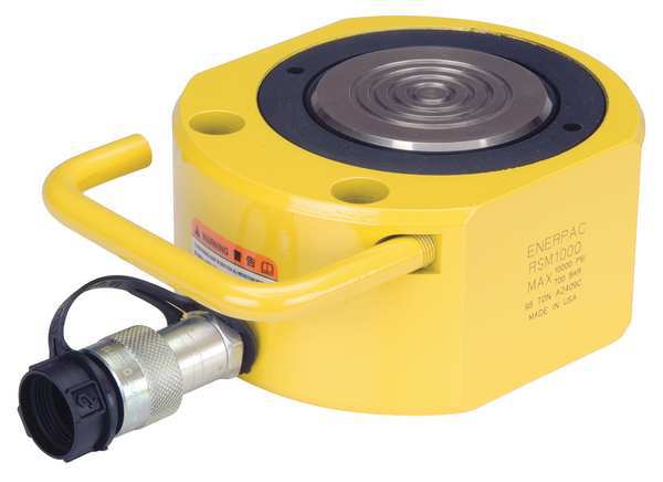 $4,554.99 / eachWeb priceRSM1500, 153.4 ton Capacity, .63 in Stroke, Low Height Hydraulic CylinderSKU G7487322Categories Lifting and HydraulicsDescription Hydraulic Ram, Single Acting, Low Profile, Steel, Nominal Capacity 150 ton, Max. Push Capacity 150 ton, Stroke Length 5/8 in, Nominal Stroke Length 5/8 in, Effective Push Area 30.68 sq in, Max. Pressure 10,000 psi, Oil Capacity Push 19.17 cu in, Retracted Height 3.94 in, Extended Height 4.56 in, Outside Dia. 8.50 in x 7.50 in, Plunger Dia. 4.5 in, Center Hole Dia. 6 1/4 in, Series RSM, Includes Dust Cap, Female CouplergraingerSKU: 18Y550, mscSKU: 74600651, zoro_no: G7487322, mongo_id: 65bbe77c9a749db82273ddbc