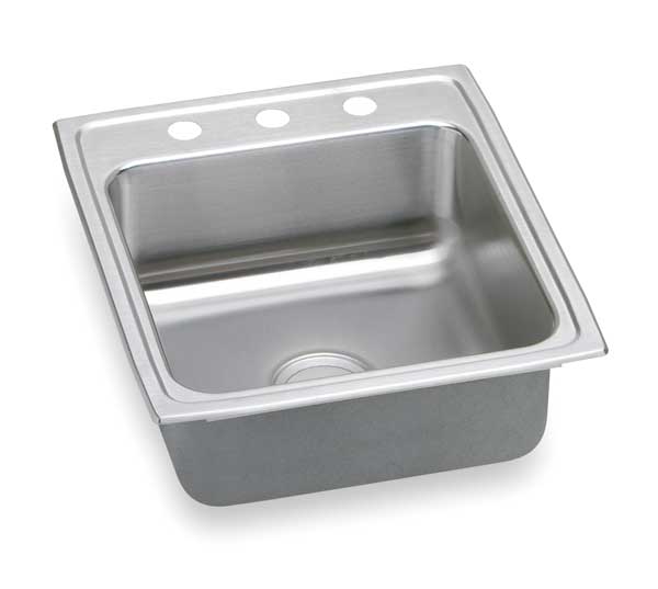 Drop-In Sink, 3 Hole, Lustrous Highlighted Satin FinishSKU G2737935Categories Lighting ToolsDescription Single Bowl Drop-in Sink, Bowl Depth 7 1/2 in, Square, Bowl Size 16 in x 16 in, Silver, Drop-In, Drain Opening 3 1/2 in, Faucet Hole Dia. 1 1/2 in, Centerset, Faucet Mounting Centers 4 in, Lustrous Satin, Gauge 18 ga, Mounting Location - Faucet Deck, Countertop, No. of Bowls 1, Number of Faucet Holes 3, Overall Height 7 5/8 in, Overall Length 19 1/2 in, Overall Width 22 in, Elkay, Lustertone Classic Series, Stainless Steel, Sink Type General PurposegraingerSKU: 3AEG2, mscSKU: , zoro_no: G2737935, mongo_id: 65bbe7d03aaddbd5a90ba455