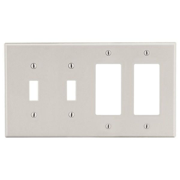 Wallplate, 4-Gang, 2) Toggle 2) Decorator, Light AlmondSKU G100490616Categories Lighting ToolsDescription Blank Wall Plate, Color Light Almond, Material Polycarbonate, Number of Gangs 4, Plate Size Standard, Resistance Properties Impact Resistant, Combination Type Decorator-Rocker/Toggle, Finish Satin, For Switch Type Rocker, Toggle, Number of Outlet Openings 2, Number of Switch Openings 4, Outlet Orientation Vertical, Overall Height 0.3 in, Overall Width 8.3 in, Standards cULus Listed, UL 94 Flammability Rating V-2, Wall Plate Type Toggle, For Use With ReceptaclegraingerSKU: 784FF2, mscSKU: , zoro_no: G100490616, mongo_id: 65bbe7a09a749db82274a176
