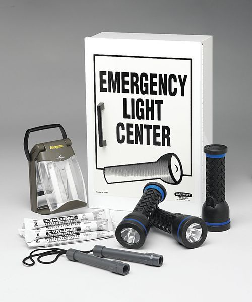 SKU G4161035Categories Lighting ToolsDescription Emergency Light Center, Height 18 in, Width 12 in, Depth 5 in, Case Color White, Case Material Metal, Includes Folding Fluorescent Lantern, 3 Rubber Flashlights, 10 Lightsticks, and 2 Lightstick Holders$273.36 / eachWeb price