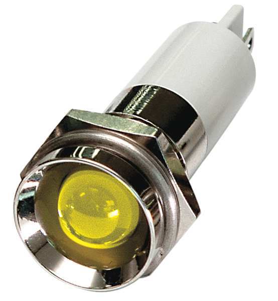 SKU G4685545Categories Lighting ToolsDescription Protruding Indicator Light, LED, Brass Plated Chrome, LED, Plastic (ABS), Yellow, Voltage 12V DC, Size 12mm Mounting dia, Electrical Connection Male .110 Connector, Shape Round, Current Drawn 20 mA, Average Life 100,000 hr, IP Rating 40, Panel Thickness Up to 0.160 in, Standards ROHS$5.80 / eachWeb price