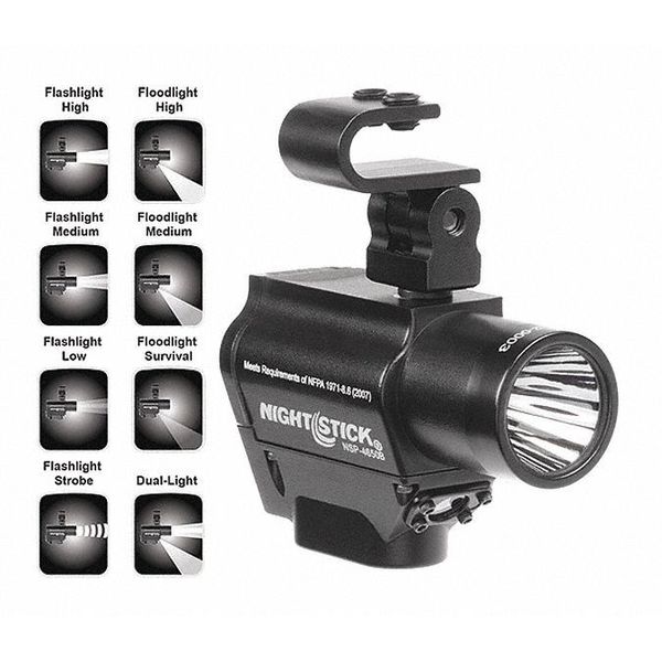 Black Helmet Mounted Dual Light Flashlight, Lithium CR123, 220lm