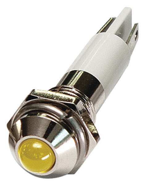 SKU G4700166Categories Lighting ToolsDescription Round Indicator Light, LED, Brass Plated Chrome, LED, Plastic (ABS), Yellow, Voltage 24V DC, Size 8mm Mounting dia, Electrical Connection Male .110 Connector, Shape Round, Current Drawn 20 mA, Average Life 100,000 hr, IP Rating 40, Panel Thickness Up to 0.160 in, Standards ROHS$5.80 / eachWeb price