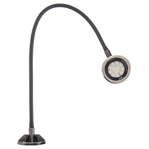 SKU G607714611Categories Lighting ToolsDescription Spot Light, Arm Reach 33 in, Arm Design Gooseneck, Bulb Wattage 18 W, Color Black, IP Rating IP65, Lighting Technology LED, Maximum Brightness 2,750 lm, Mount Type Screw-Down Base, Operating Voltage 100 to 240V AC, Power Cord Length 7 1/2 ft, Arm Adjustability Any Which Way, Base Diameter 4 in, Color Rendering Index Not Applicable, Color Temperature 5000K, Electrical Connection Type Power Cord, Head Diameter 4.5 in, Arm Material Aluminum, Beam Angle 30 DegreesgraingerSKU: 801CK6, mscSKU: , zoro_no: G607714611, mongo_id: 65bbee0c526e052139ae778a