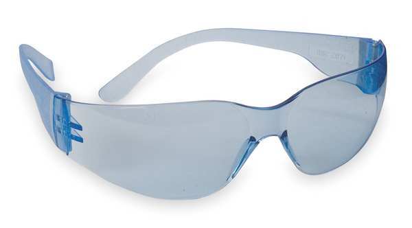 Safety Glasses, Wraparound Light Blue Polycarbonate Lens, Scratch-Resistant