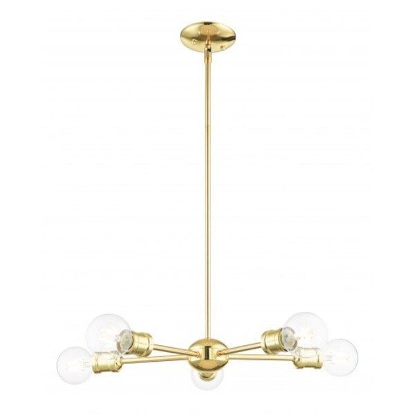 Polished Brass Chandelier, 5 Light