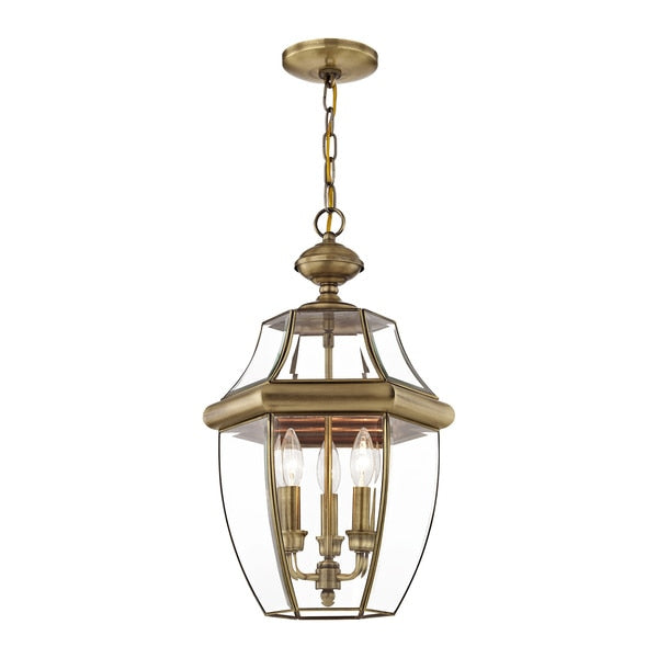 Monterey 3 Light Antique Brass Outdoor Pendant Lantern