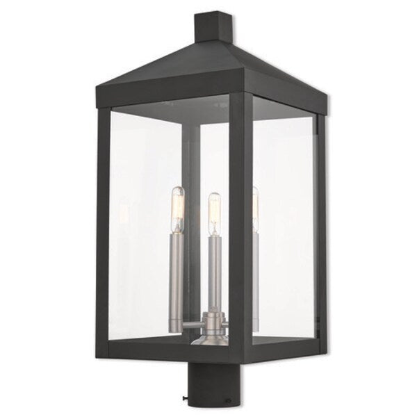 Nyack 3 Light Black Outdoor Post Top Lantern