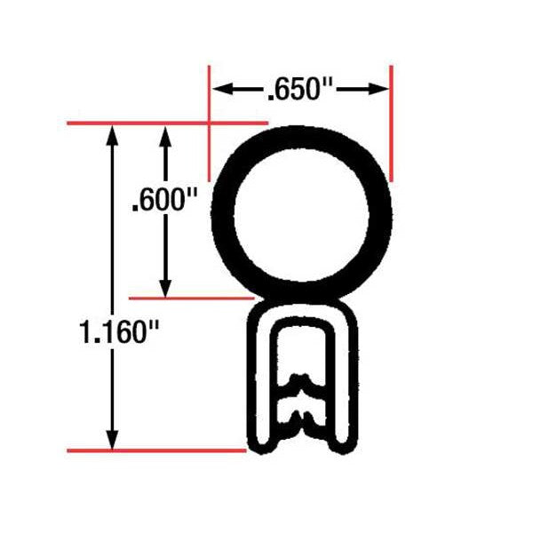 Rubber Seal, 11/20" H, 25 ft L, Double Bulb