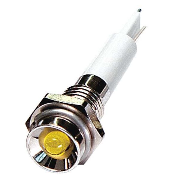 SKU G4695966Categories Lighting ToolsDescription Protruding Indicator Light, LED, Brass Plated Chrome, LED, Plastic (ABS), Yellow, Voltage 24V DC, Size 6mm Mounting dia, Electrical Connection Lead for Soldering, Shape Round, Current Drawn 20 mA, Average Life 100,000 hr, IP Rating 40, Panel Thickness Up to 0.160 in, Standards ROHSgraingerSKU: , mscSKU: , zoro_no: G4695966, mongo_id: 65bbe8b222d7a989a990d897