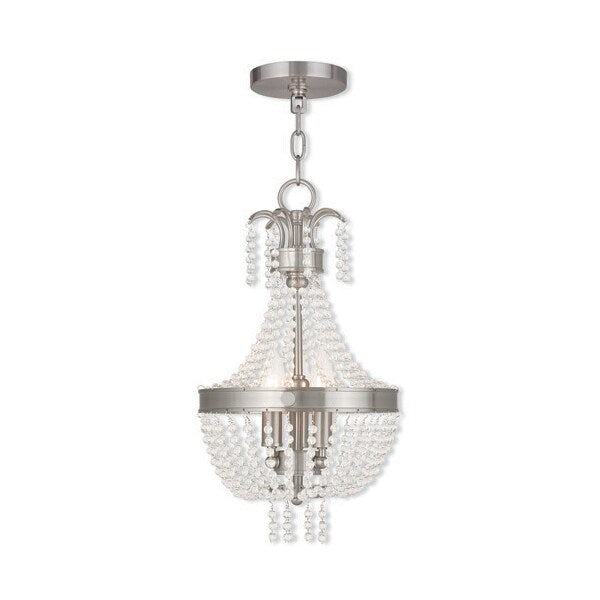 SKU G7056413Categories Lighting ToolsDescription Valentina 3 Light Brushed Nickel PendantgraingerSKU: , mscSKU: , zoro_no: G7056413, mongo_id: 65bbe84d9a749db822785b92