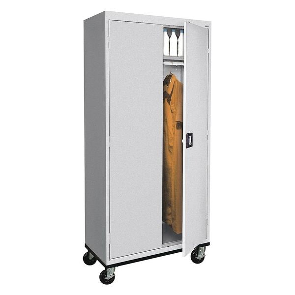 Solid Door Storage Cabinet, 36 in W, 78 in H, 24 in D, Light GraySKU G2132728Categories Lighting ToolsDescription Storage Cabinet, Base Type Casters, Body Panel Type Solid, Cabinet Color Gray, Cabinet Material Steel, Cabinet Storage Components Hanging Rods, Shelves, Door Handle Type Recessed Pull, Door Type Solid, Duty Rating Medium Duty, For Use Indoors/Outdoors No, Frame Assembled Assembled, Load Capacity per Shelf 200 lb, Lock Type Keyed, Mobility Mobile, Mounting Location Freestanding, Number of Shelves 3, Overall Depth 24 in, Overall Height 78 in, Overall Width 36 in, Audit Trail Storage NonegraingerSKU: 5DCV8, mscSKU: , zoro_no: G2132728, mongo_id: 65bbe69e3aaddbd5a903f5ad