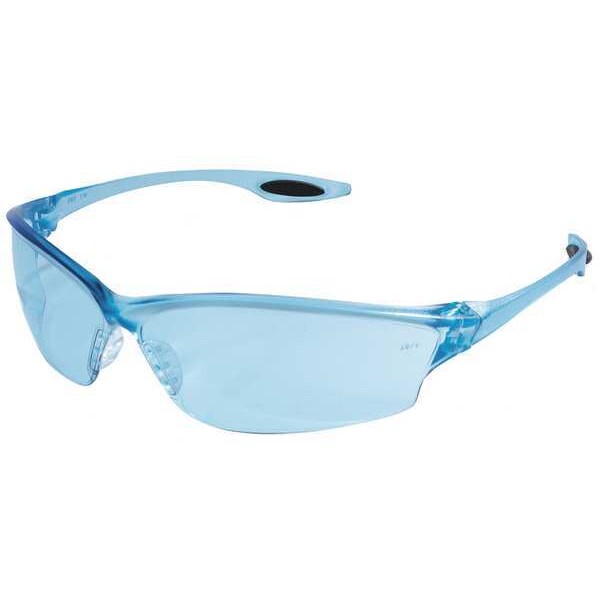 Safety Glasses, Wraparound Light Blue Polycarbonate Lens, Scratch-Resistant