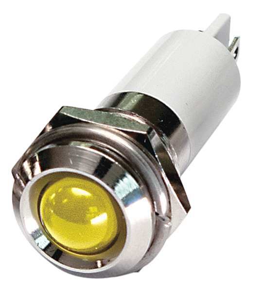 SKU G4676025Categories Lighting ToolsDescription Round Indicator Light, LED, Brass Plated Chrome, LED, Plastic (ABS), Yellow, Voltage 110V AC, Size 12mm Mounting dia, Electrical Connection Male .110 Connector, Shape Round, Current Drawn 4.4 mA, Average Life 100,000 hr, IP Rating 40, Panel Thickness Up to 0.160 in, Standards ROHSgraingerSKU: , mscSKU: , zoro_no: G4676025, mongo_id: 65bbe6173aaddbd5a900750f