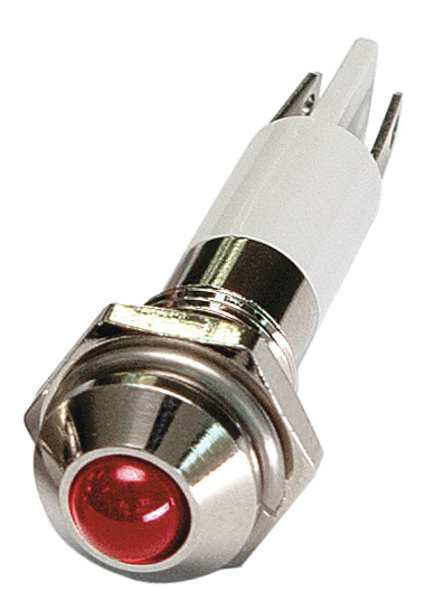 SKU G4657904Categories Lighting ToolsDescription Round Indicator Light, LED, Brass Plated Chrome, LED, Plastic (ABS), Red, Voltage 24V DC, Size 8mm Mounting dia, Electrical Connection Male .110 Connector, Shape Round, Current Drawn 20 mA, Average Life 100,000 hr, IP Rating 40, Panel Thickness Up to 0.160 in, Standards ROHSgraingerSKU: , mscSKU: , zoro_no: G4657904, mongo_id: 65bbe65b3aaddbd5a9023eed