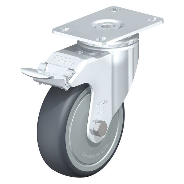 Swivel Plate Caster, TPR, 4", Brake, Caster Load Rating Range: Light-Duty