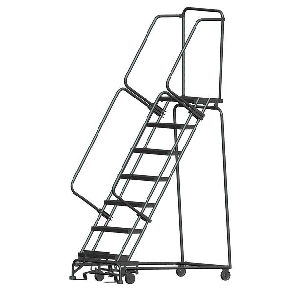90 in H Steel Rolling Ladder, 6 StepsSKU G0998317Categories Material HandlingDescription Rolling Ladder, Material Steel, Platform Height 60 in, Handrails Included Yes, Handrail Height 30 in, Overall Height 90 in, Number of Steps 6, Unassembled, Load Capacity 450 lb, Step Tread Serrated, Platform Depth 20 in, Platform Width 16 in, Bottom Width 25 in, Base Depth 78 in, Overall Width 25 in, Climbing Angle 59 Degrees , Step Depth 7 in, Step Width 16 in, Ladder Actuation Foot Activated Step Lock, Finish Powder Coated, Color Gray, Standards ANSI, OSHA, Rear Exit NograingerSKU: 21UW46, mscSKU: , zoro_no: G0998317, mongo_id: 65bbe96322d7a989a994ff56