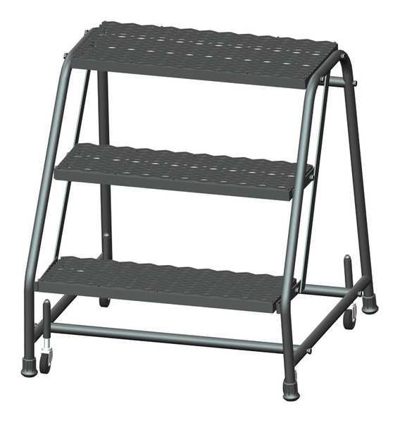 28 1/2 in H Steel Rolling Ladder, 3 StepsSKU G7265632Categories Material HandlingDescription Rolling Ladder, Material Steel, Platform Height 28 1/2 in, Handrails Included No, Overall Height 28 1/2 in, Number of Steps 3, Assembled, Load Capacity 450 lb, Step Tread Expanded Metal, Platform Depth 10 in, Platform Width 24 in, Bottom Width 30 in, Base Depth 25 in, Overall Width 30 in, Climbing Angle 59 Degrees , Step Depth 7 in, Step Width 24 in, Ladder Actuation None, Finish Powder Coated, Color Gray, Standards ANSI, OSHAgraingerSKU: 8DUT0, mscSKU: , zoro_no: G7265632, mongo_id: 65bbe96322d7a989a994ff3c