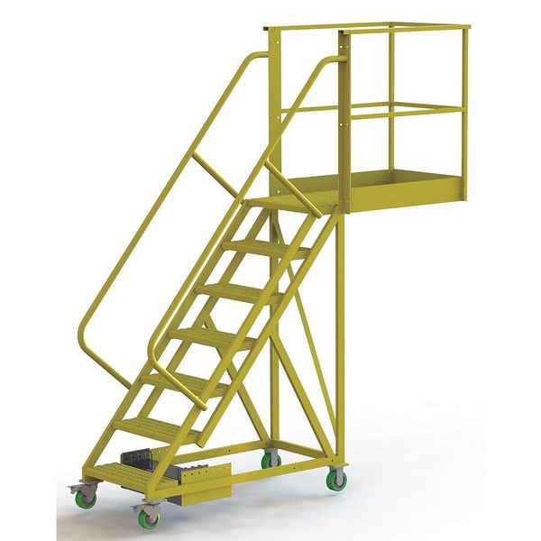 SKU G9957683Categories Material HandlingDescription Unsupported, Cantilever Rolling Ladder, Material Steel, Unassembled, Handrails Included Yes, Platform Height 70 in, Platform Width 24 in, Platform Depth 40 in, Overall Height 112 in, Load Capacity 300 lb, Handrail Height 42 in, Bottom Width 30 in, Base Depth 101 in, Number of Steps 7, Climbing Angle 50 Degrees , Ladder Actuation Locking Casters, Step Depth 10 in, Step Width 24 in, Step Tread Serrated, Finish Powder Coated, Color Yellow, Standards OSHA 1910.29 and ANSI A14.7graingerSKU: 15F006, mscSKU: , zoro_no: G9957683, mongo_id: 65bbe96322d7a989a994ff08