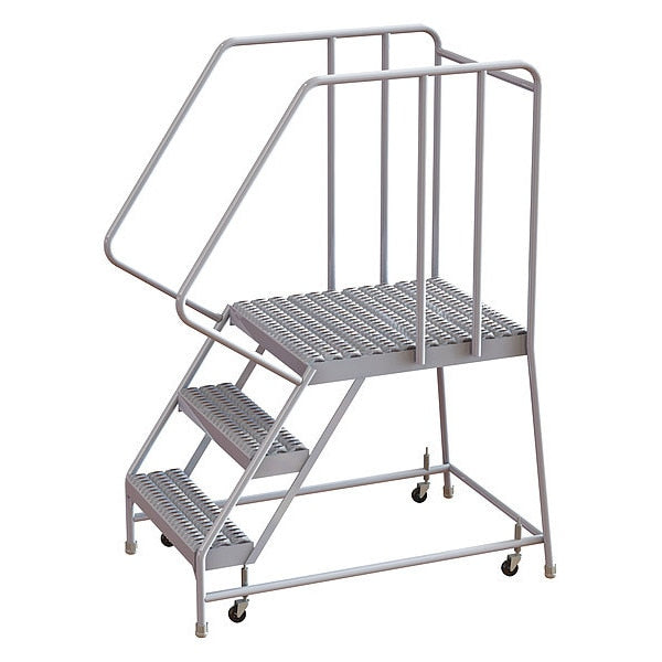57 in H Steel Rolling Ladder, 3 StepsSKU G6253642Categories Material HandlingDescription Rolling Ladder, Material Steel, Platform Height 27 in, Handrails Included Yes, Handrail Height 30 in, Overall Height 57 in, Number of Steps 3, Unassembled, Load Capacity 450 lb, Step Tread Antislip Vinyl, Platform Depth 14 in, Platform Width 16 in, Bottom Width 24 in, Base Depth 32 in, Overall Width 24 in, Climbing Angle 59 Degrees , Step Depth 8 in, Step Width 16 in, Ladder Actuation Weight Activated Step Lock, Finish Powder Coated, Color Brown, Standards ANSI, OSHA, Includes Right HandrailgraingerSKU: 6MXG3, mscSKU: , zoro_no: G6253642, mongo_id: 65bbe96322d7a989a994ff74