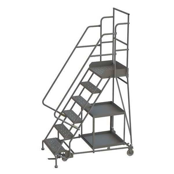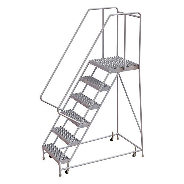 96 in H Steel Stock Picking Rolling Ladder, 6 StepsSKU G3373487Categories Material HandlingDescription Stock Picking Rolling Ladder, Material Steel, Platform Height 60 in, Handrails Included Yes, Handrail Height 36 in, Overall Height 96 in, Number of Steps 6, Unassembled, Load Capacity 450 lb, Step Tread Serrated, Platform Depth 20 in, Platform Width 24 in, Bottom Width 35 in, Base Depth 60 in, Overall Width 35 in, Climbing Angle 56 Degrees , Step Depth 7 in, Step Width 24 in, Ladder Actuation Foot Activated Step Lock, Finish Powder Coated, Color Gray, Standards ANSI, OSHAgraingerSKU: 45FG30, mscSKU: , zoro_no: G3373487, mongo_id: 65bbe96322d7a989a994ff0c