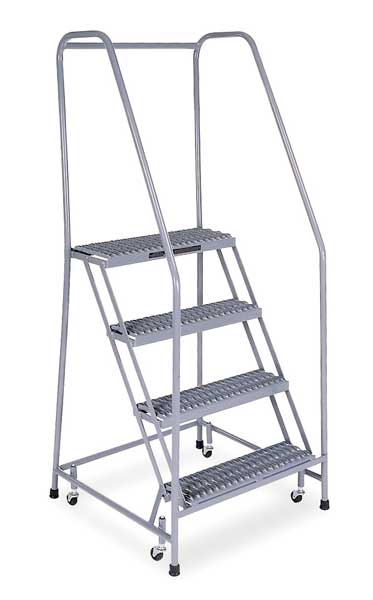 70 in H Steel Rolling Ladder, 4 StepsSKU G2138039Categories Material HandlingDescription Rolling Ladder, Material Steel, Platform Height 40 in, Handrails Included Yes, Handrail Height 30 in, Overall Height 70 in, Number of Steps 4, Assembled, Load Capacity 450 lb, Step Tread Serrated, Platform Depth 10 in, Platform Width 24 in, Bottom Width 30 in, Base Depth 31 in, Overall Width 30 in, Climbing Angle 59 Degrees , Step Depth 7 in, Step Width 24 in, Ladder Actuation Weight Activated Step Lock, Finish Powder Coated, Color Gray, Standards ANSI, OSHA, Rear Exit NograingerSKU: 4XM32, mscSKU: , zoro_no: G2138039, mongo_id: 65bbe96322d7a989a994ff73